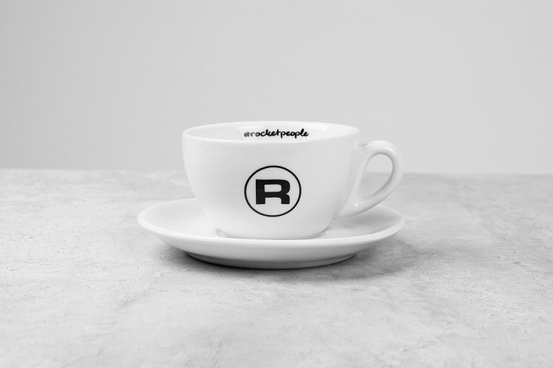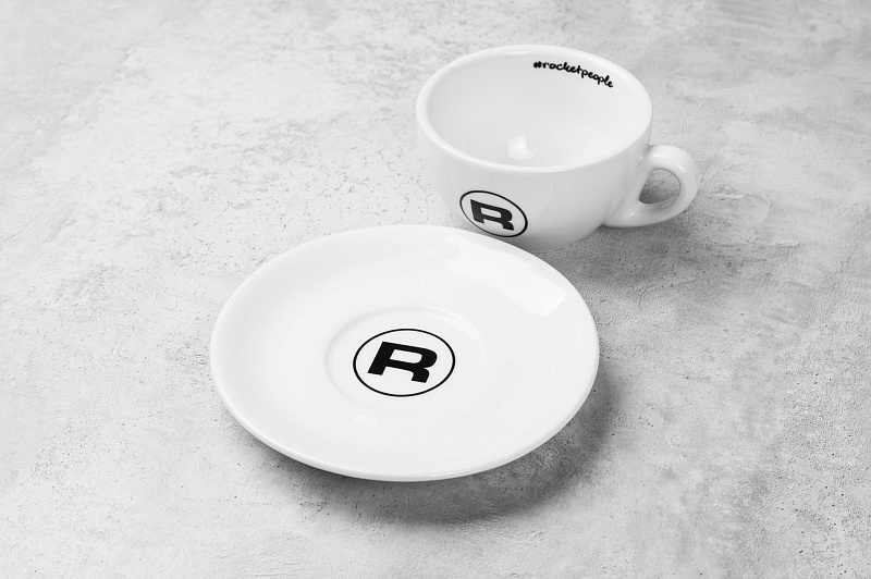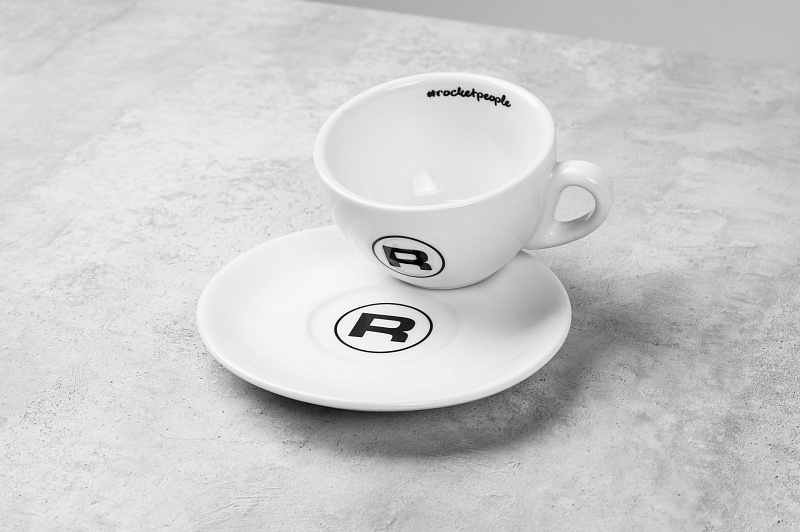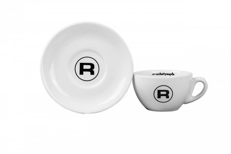 Чашка объемом 180 мл с культовым логотипом «R» Rocket и надписью #rocketpeople внутри идет в комплекте с блюдцем диаметром 14.6 см.