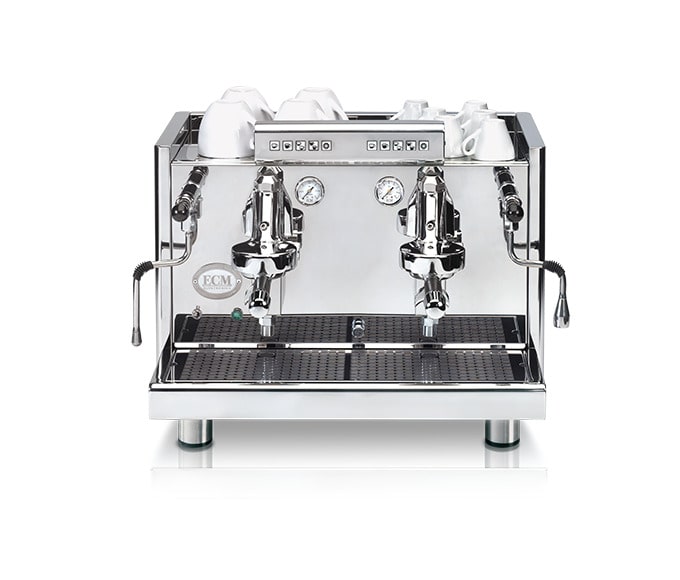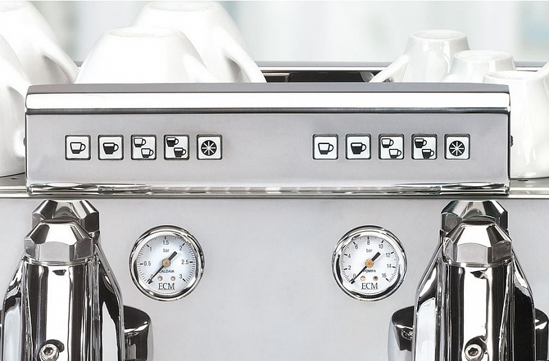 ECM Elektronika Profi Due – рожковая коммерческая кофемашина в корпусе из нержавеющей стали с медным бойлером на 4 л, резервуаром для воды примерно на 3 л и варочной группой Е61. Машина оснащена ротационным насосом и двумя манометрами – бойлера и насоса.
