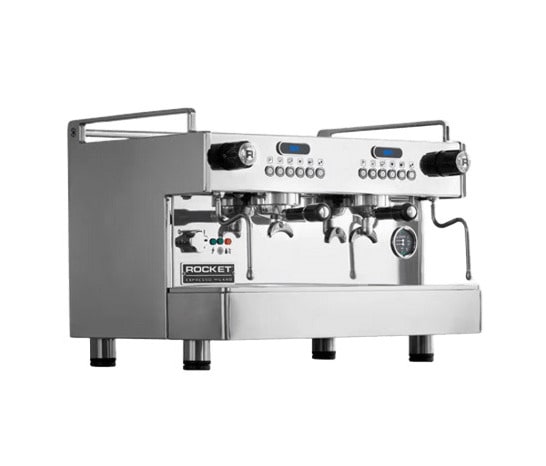 Rocket Boxer EVO – коммерческая рожковая кофемашина с 2 группами в корпусе из нержавеющей стали, кольцевой варочной группой и цифровым дисплеем.