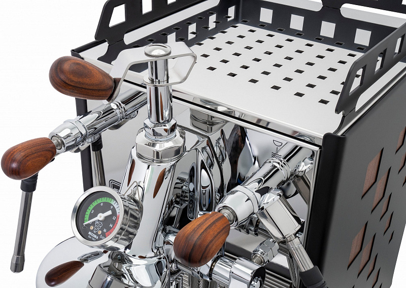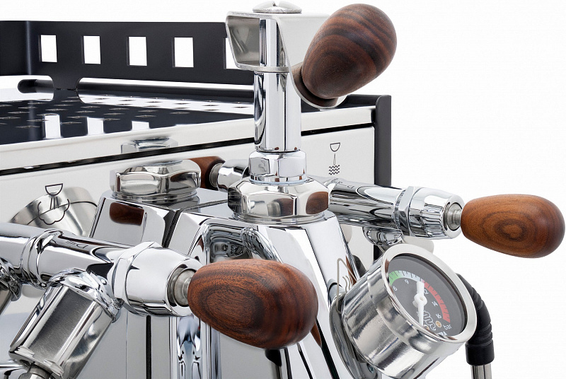 Двойные манометры позволяют контролировать давление бойлера и заваривания, а уникальные вырезы на боковых панелях добавляют дополнительный стиль.