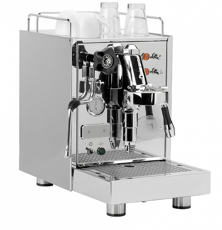 Одноконтурная рожковая кофемашина ECM в классическом стиле, с ручной варочной группой E61, инновационным инфузионным цилиндром из нержавеющей стали, ПИД-регулятором для программирования температуры бойлера при подаче пара и приготовлении эспрессо, а также для индикации времени пролива эспрессо в секундах. Полированный корпус из нержавеющей стали с полностью съемным поддоном для чашек и хромированным рейлингом, изолированный бойлер из нержавеющей стали на 0.75 л с быстрым разогревом, классические рычажные краны, удобный доступ к расширительному клапану для индивидуальной настройки давления при приготовлении эспрессо, интервальный насос Ulka, манометр давления насоса на 16 Бар, паровая трубка с шарнирным соединением с профессиональным поворотным краном, резервуар для свежей воды объемом 2.8 л с всасывающим клапаном. Варочная группа нагревается системой циркуляции воды.