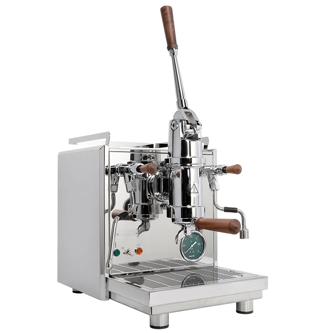 Profitec Pro 800 — это мощная рожковая кофемашина с ручным рычагом в классически элегантном стиле со всеми преимуществами современных технологий. Машина оснащена насыщенной варочной группой из хромированной латуни весом 7.8 кг, системой преинфузионного цилиндра, высококачественным корпусом из хромированной нержавеющей стали со скошенными краями, большим сливным поддоном на 1 литр и регулируемыми по высоте ножками из нержавеющей стали, а также рейлингом из нержавеющей стали и полностью съемным поддоном для чашек. Обновленная версия включает в себя изготовленные вручную акценты из американского орехового дерева на ручном рычаге, рычажных клапанах и ручке портафильтра.