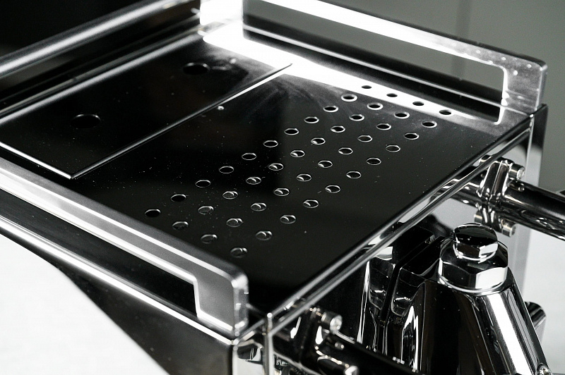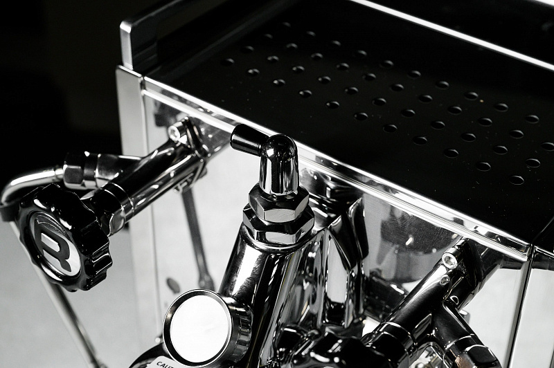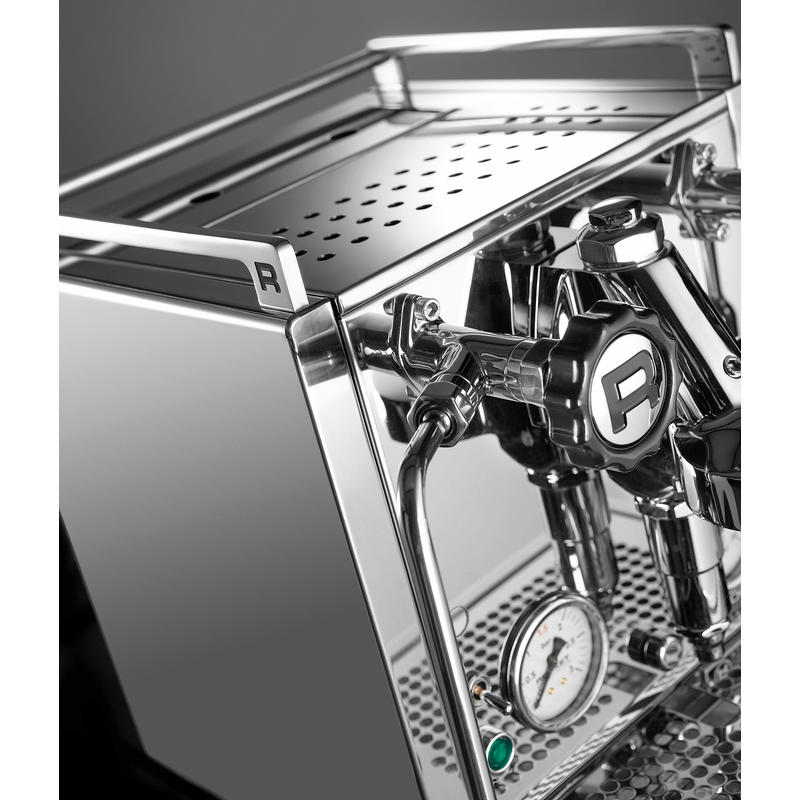 Новый дизайн R58 с сенсорным дисплеем, ПИД-регулятором и таймером. Толстостенный корпус из полированной нержавеющей стали с высококачественными закругленными краями и стандартными рейлингами из нержавеющей стали, двойной бойлер:
