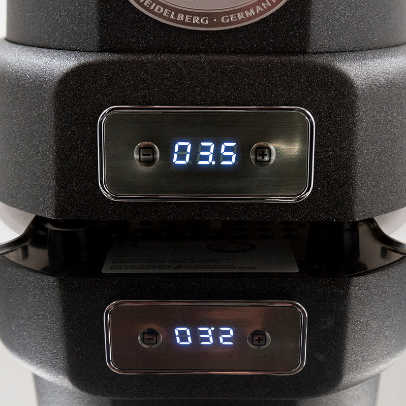 Процесс помола контролируется с помощью серебристого дисплея в нижней части машины, который показывает два предварительно установленных времени помола, регулируемых с точностью до десятой доли секунды. Мощный двигатель мощностью 450 Вт позволяет V-Titan 64 перемалывать 11 граммов кофе всего за 2.5 секунды, что соответствует или даже превосходит большинство кофемолок в своем ценовом диапазоне.