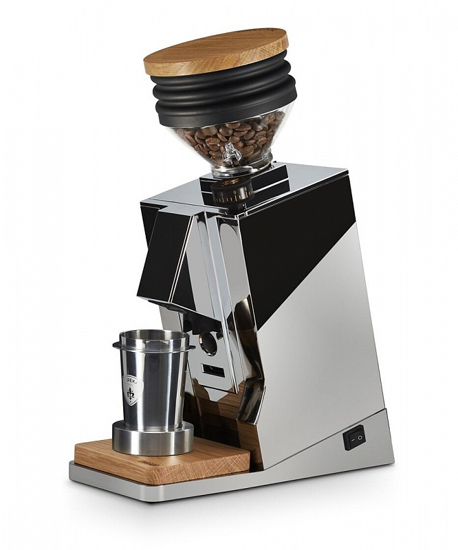 Eureka Mignon Single Dose – эстетичная кофемолка на одну порцию с наклонным корпусом и деревянными акцентами.