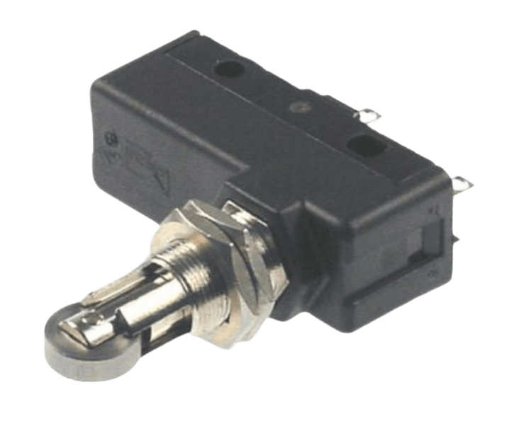 Микропереключатель приводится в действие при помощи ролика.