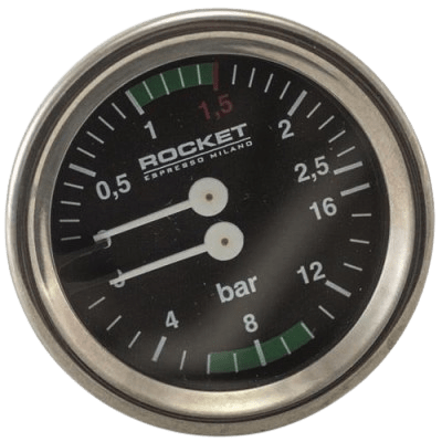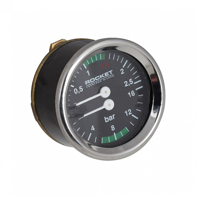 Двойной манометр черного цвета - бойлера 0-2.5 бар и насоса 0-16 бар - для кофемашин Rocket Boxer.