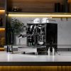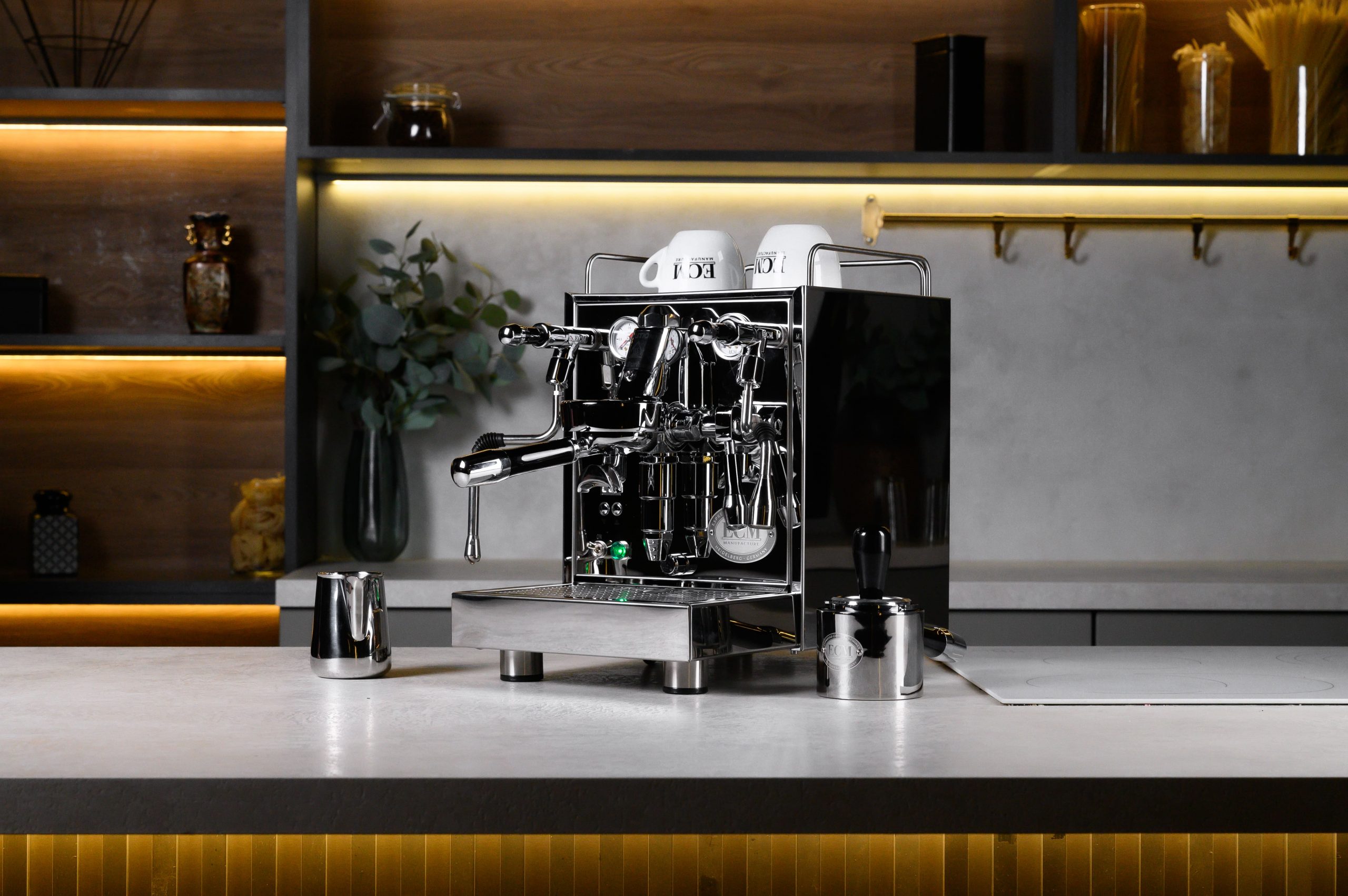 Двухконтурная рожковая эспрессо-машина с ручной варочной группой E61 и инновационным колпаком из нержавеющей стали, с корпусом из высококачественной хромированной нержавеющей стали с полностью съемным поддоном для чашек и хромированной направляющей имеет паровой бойлер из нержавеющей стали объемом 2.1 л с прессостатом и изолированным нагревателем из Incoloy 800, классические тумблеры, бесшумный роторный насос, бойлер на 3 Бар и манометр насоса на 16 Бар, паровая трубка с шаровым соединением и аэратор для горячей воды с профессиональными клапанами наклона, бак для пресной воды на 3 л с всасывающим клапаном. Варочная группа обогревается системой циркуляции горячей воды. Предусмотрена возможность переключения с водяного бака на стационарное подключение к водопроводу. Мощность нагрева 1200 Вт.